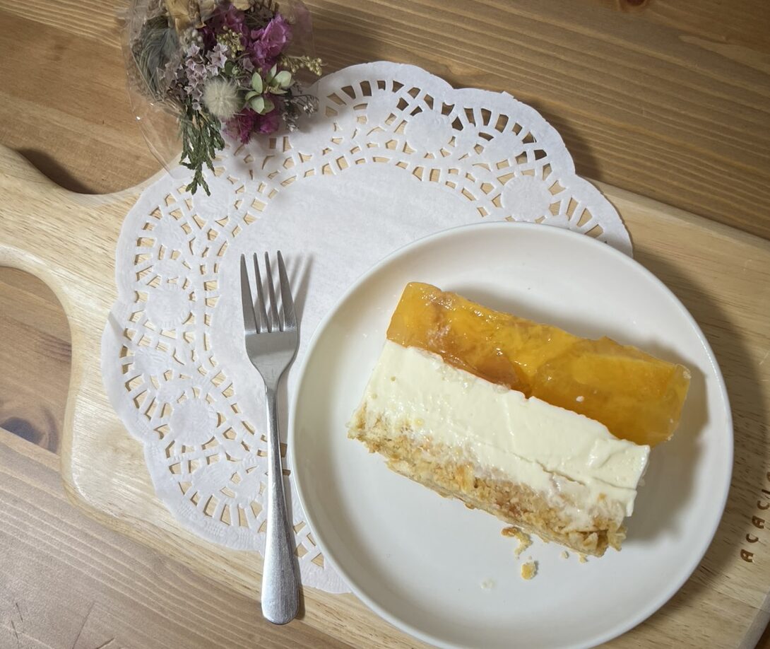 桃のコンポートゼリー+アールグレイレアチーズケーキ